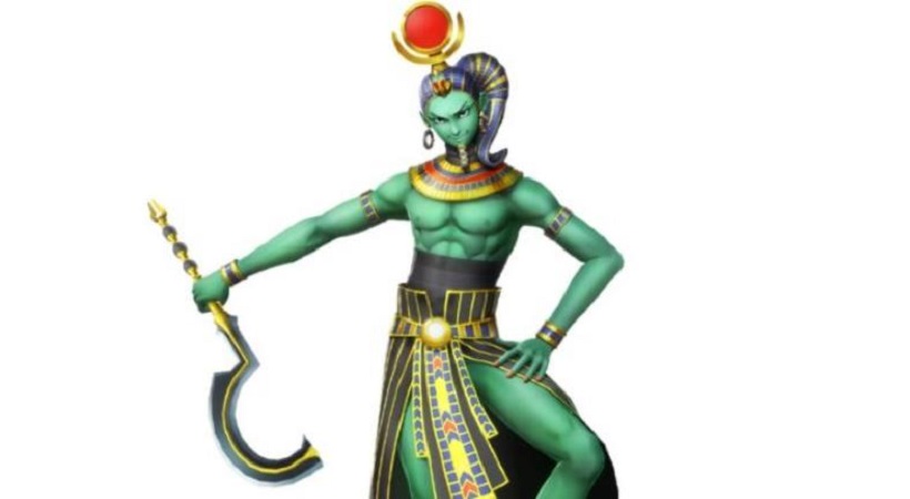据说他独特的发型象征着童年,我们在这里把它描绘成一个由新月形和分层圆盘组成的头饰。为了唤起他更暴力的天性,我们还给他配备了一个新月形的khepes,并把他的指甲染红,让他觉得指甲上沾满了血。