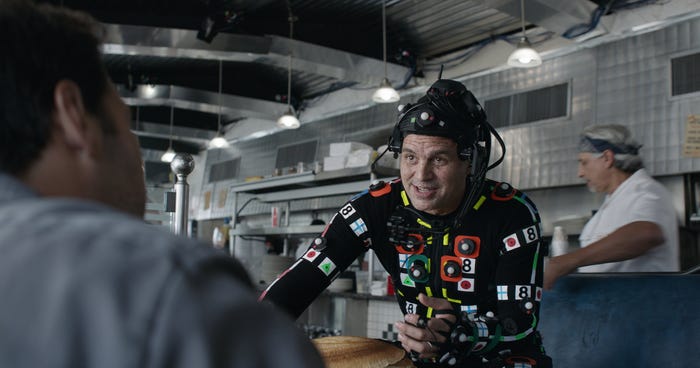 马克·鲁法洛穿着动作捕捉服来拍摄他在电影中的场景。